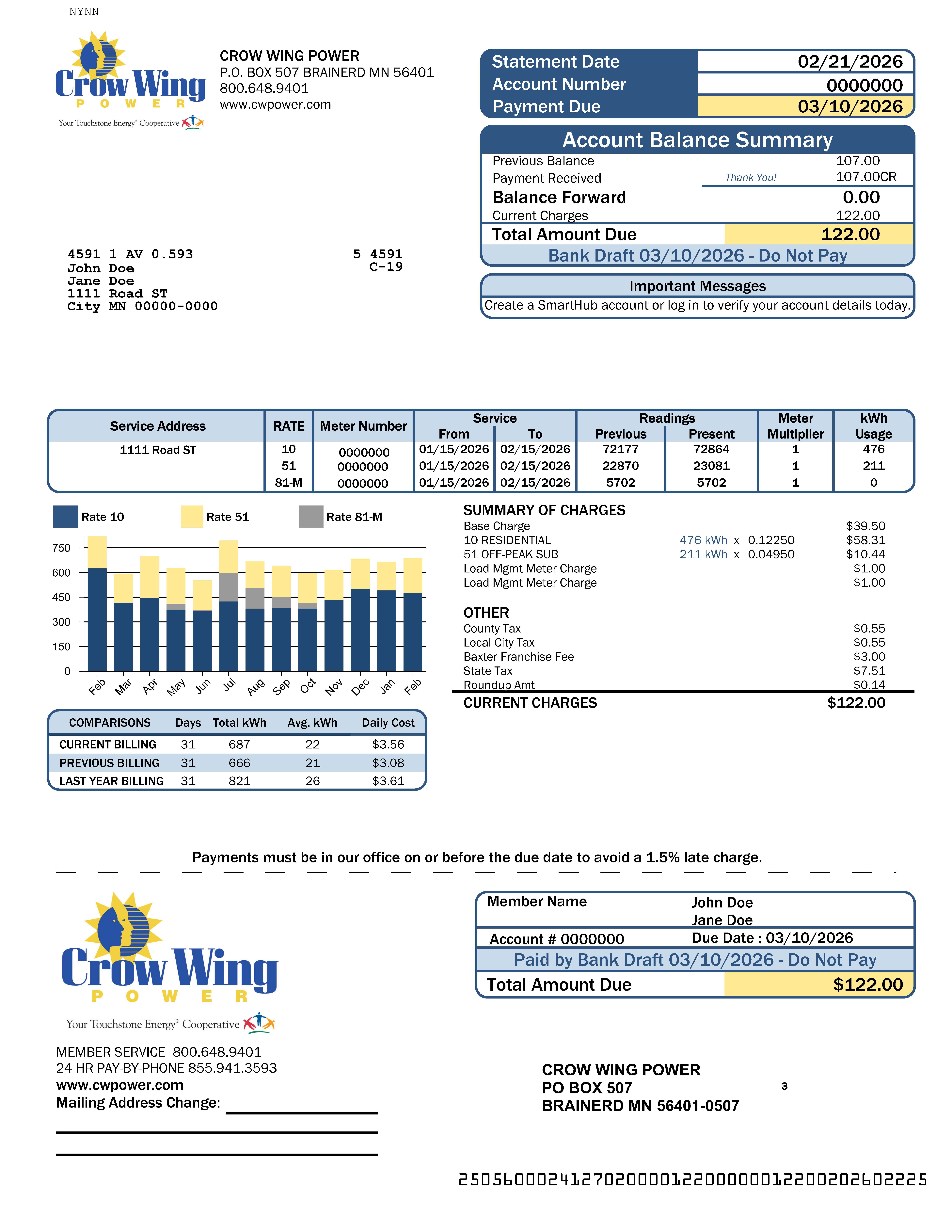 Crow Wing Power provides you with an explanation guide so you can have a clear understanding of everything that’s included on your monthly bill.