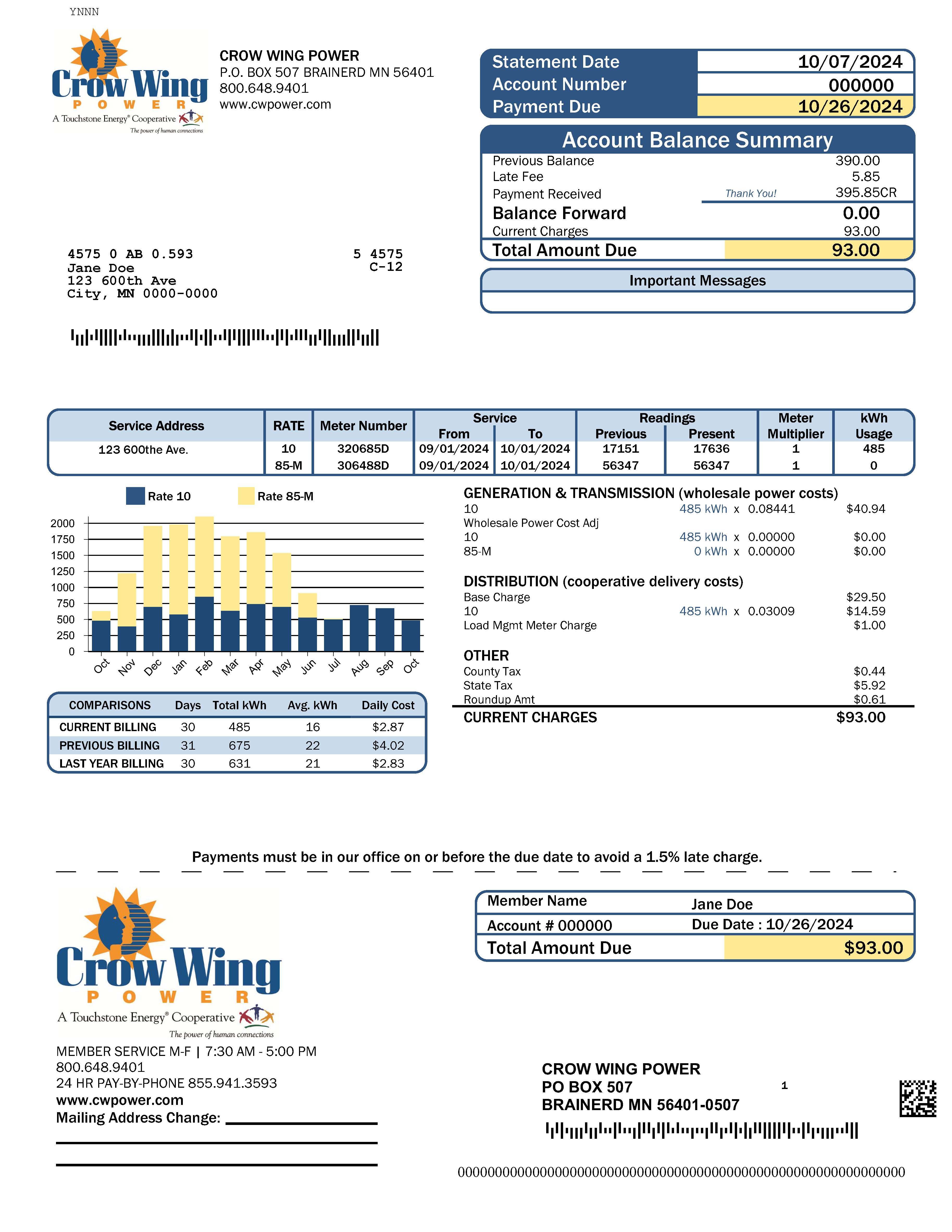Crow Wing Power provides you with an explanation guide so you can have a clear understanding of everything that’s included on your monthly bill.